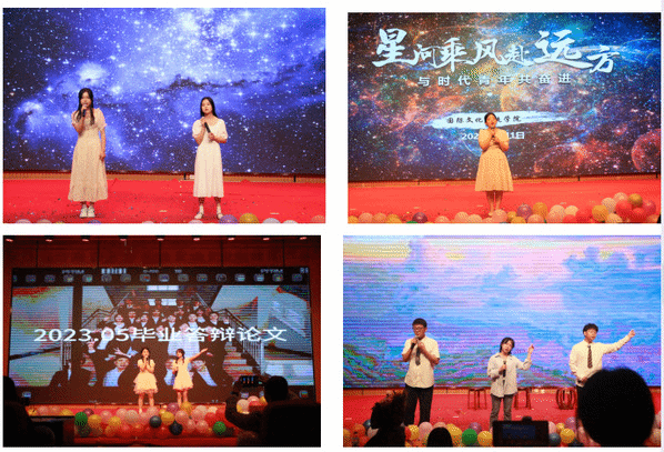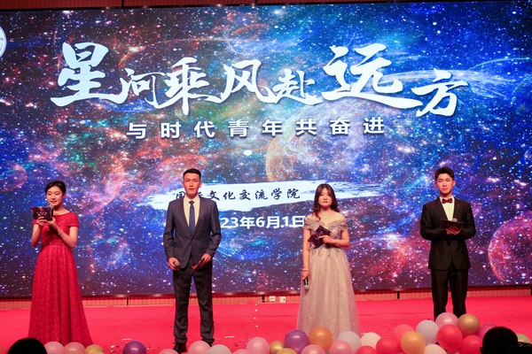 于2023年6月1日在温泉校区后勤楼道德讲堂举办“星河乘风赴远方——与时代青年共奋进”2023届毕业典礼暨毕业晚会。