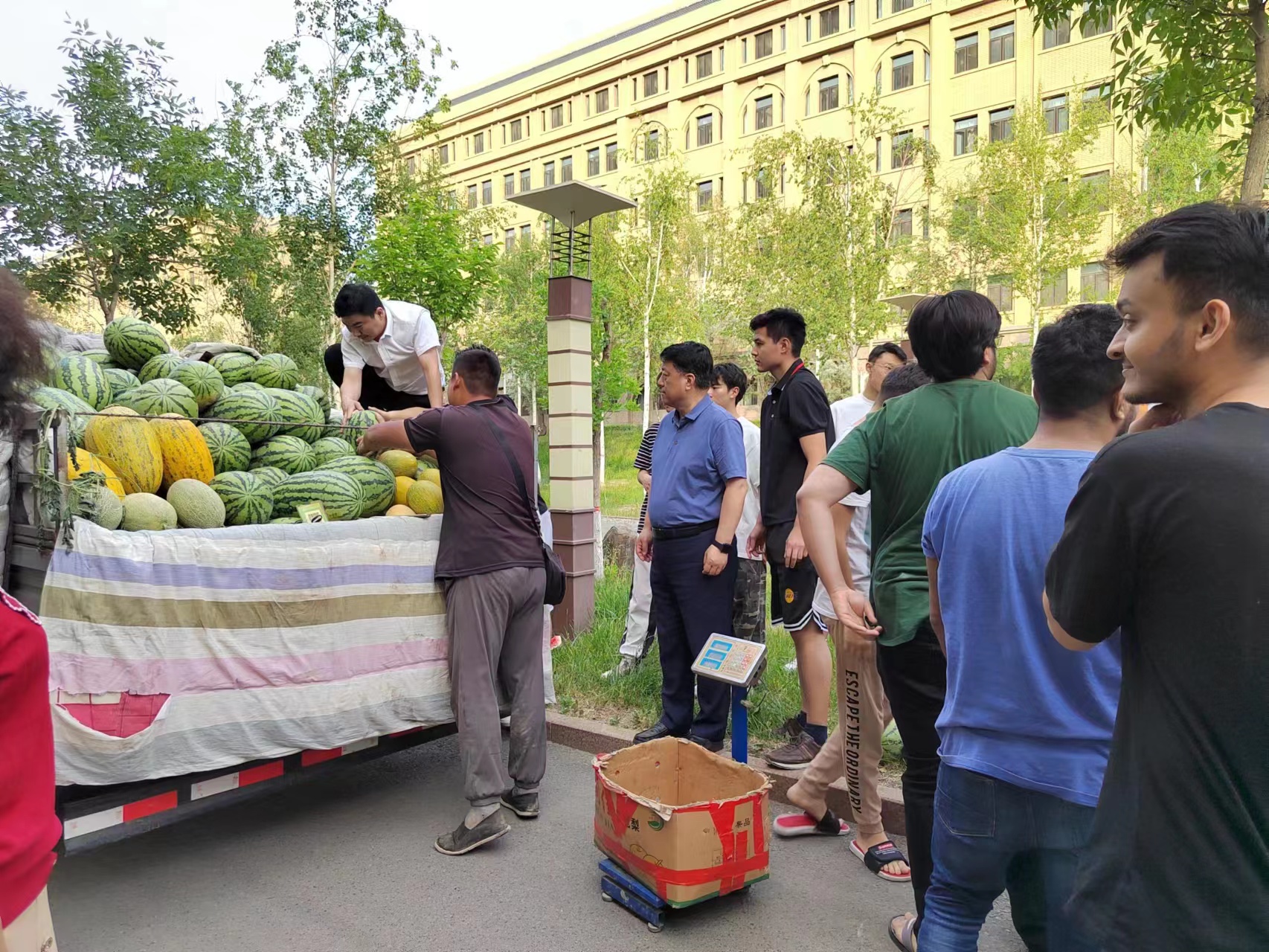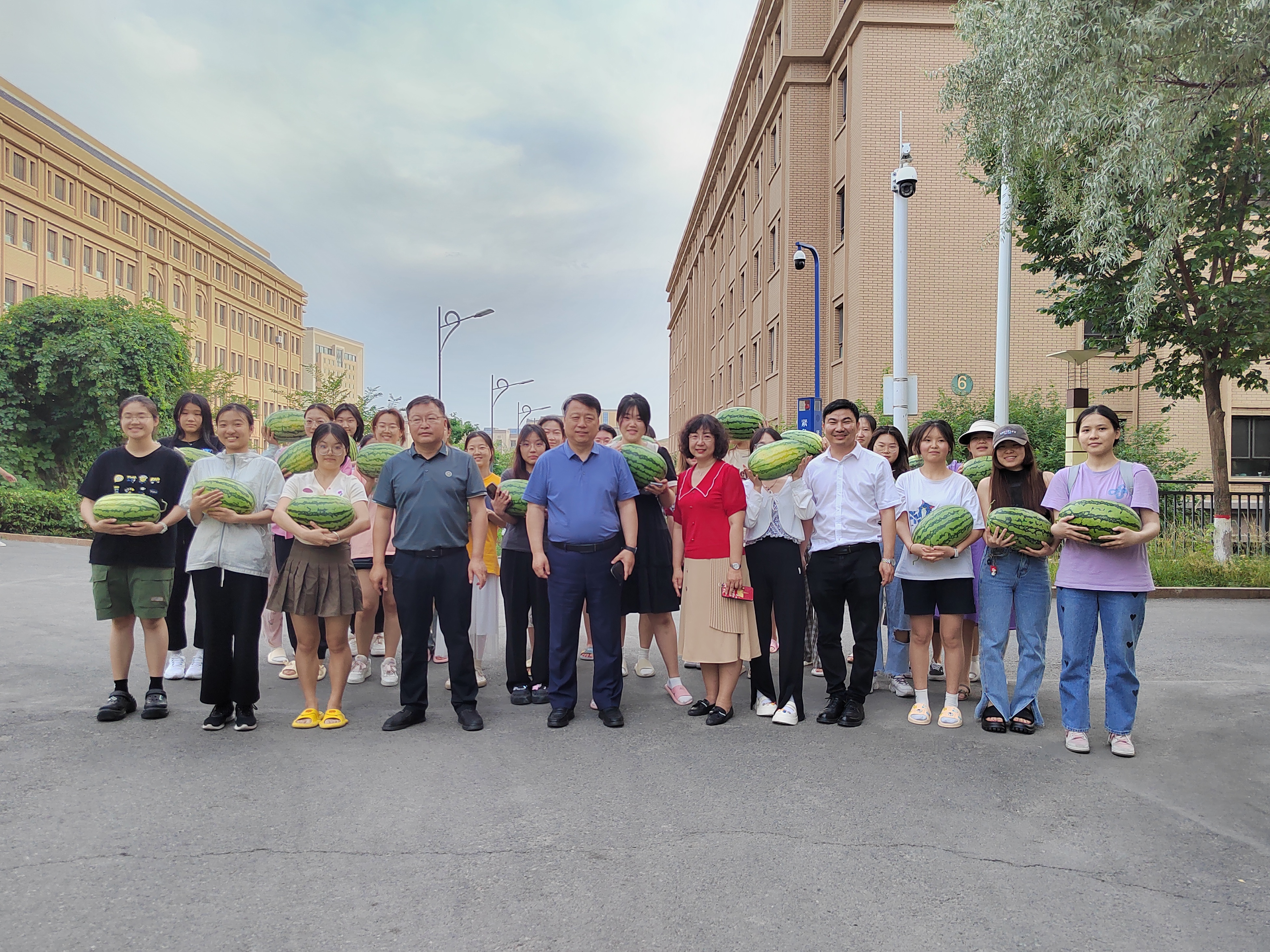 在开展“三好宿舍”建设评比活动的同时,为更好落实“我为师生办实事”工作,学院于6月23日下午开展了夏日送清凉慰问活动。学院党委书记李嘉东、党委副书记、纪委书记王辰、副院长刘伟乾、副院长陈爽以及辅导员老师和留学生管理老师等一同来到学生宿舍为学院学生和留学生分发西瓜,对高温下坚持复习的学子们表示慰问和关心关怀,并勉励同学们认真复习,在期末考试中考出好的成绩。