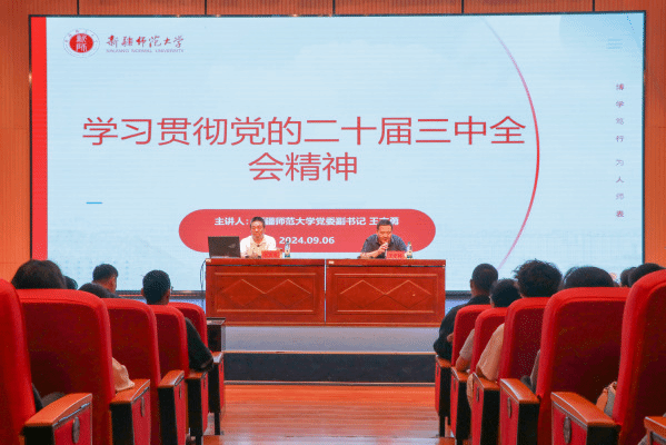 2024级新生带来了以“学习贯彻党的二十届三中全会精神”为主题的开学第一课,学院党委书记王守峰主持讲座。此次讲座旨在帮助新生深入理解党的最新会议精神,激励他们为实现中华民族伟大复兴的中国梦贡献力量。