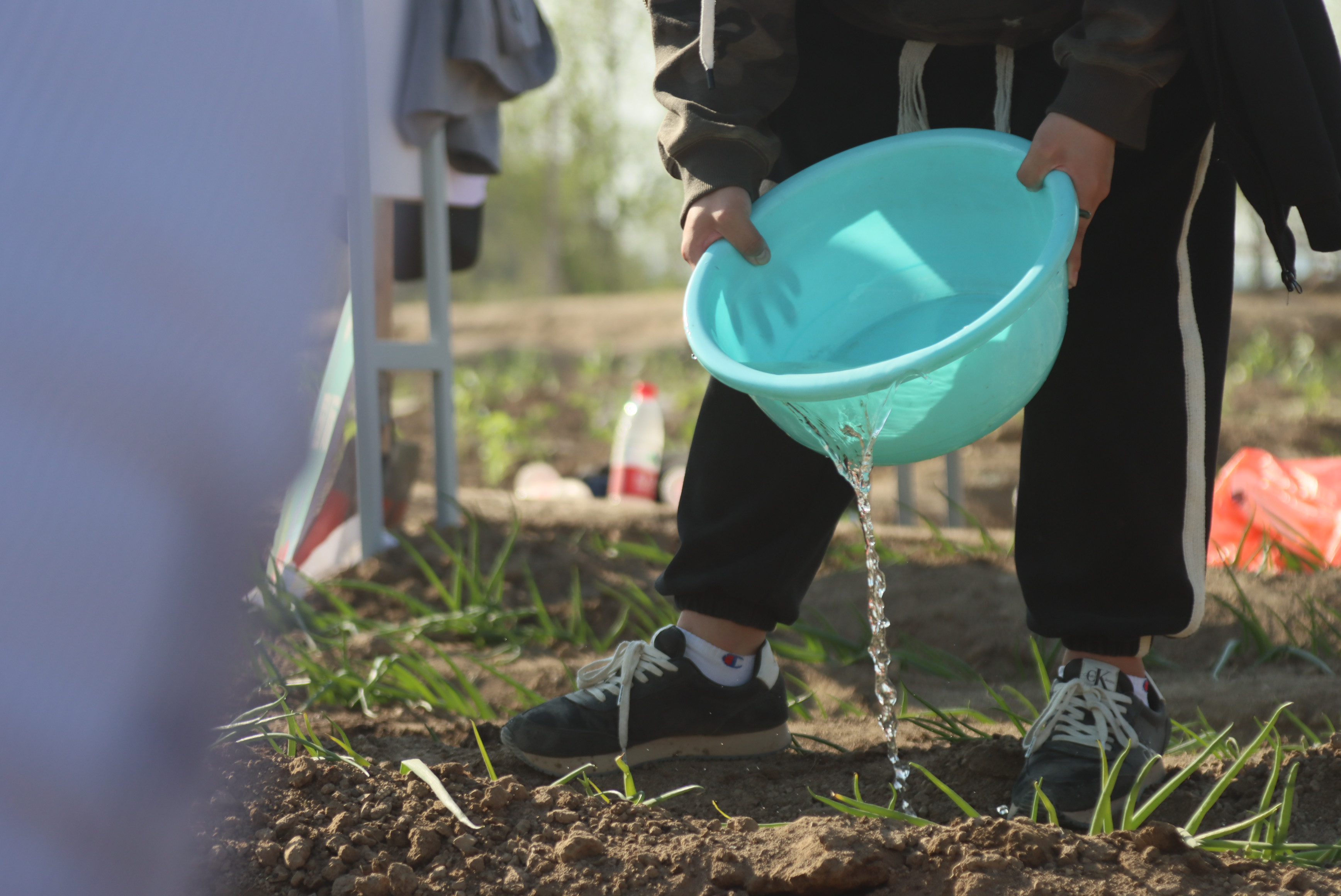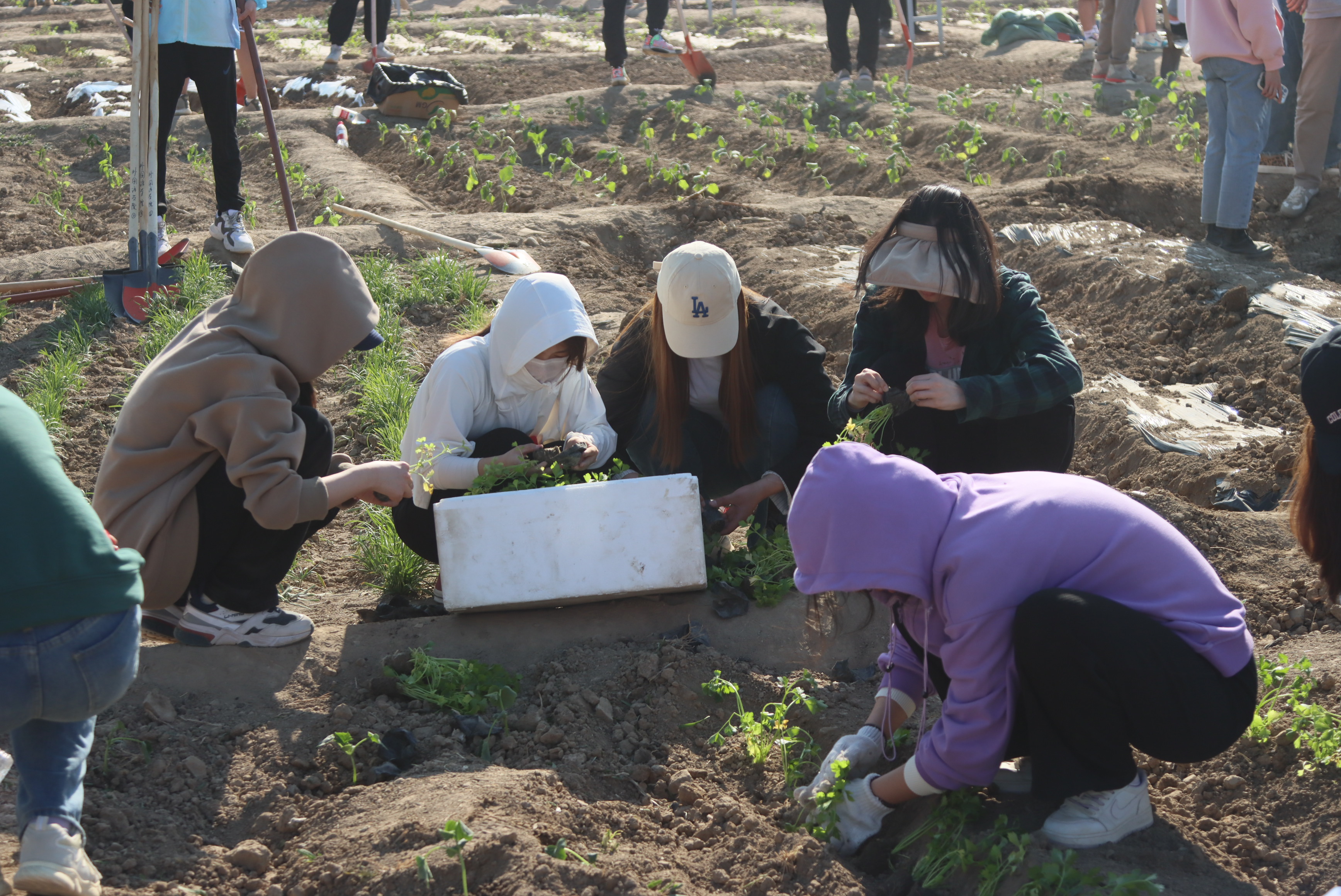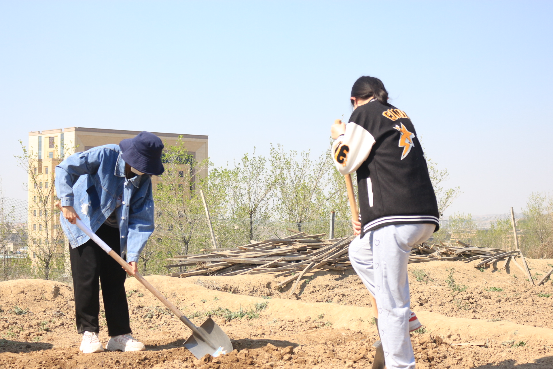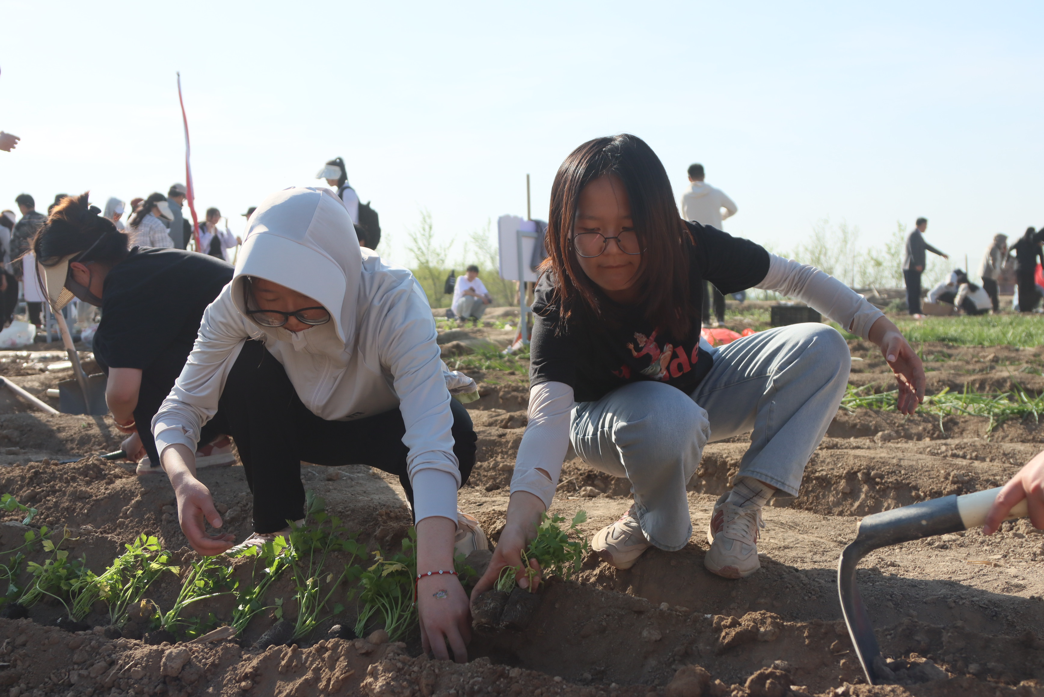 划分的农场地里随处可见老师和同学们忙碌的身影,大家分工合理,配合默契。有的翻地松土,有的除草清理,有的种下春苗,有的浇灌甘甜。炎炎烈日,抵挡不住同学们的劳动热情,大家有说有笑,沉浸式体验种菜。在同学们的辛勤耕作下,顺利完成辣椒、大葱、茄子等近百株菜苗的种植,为桃山的农田种下了希望的苗种。