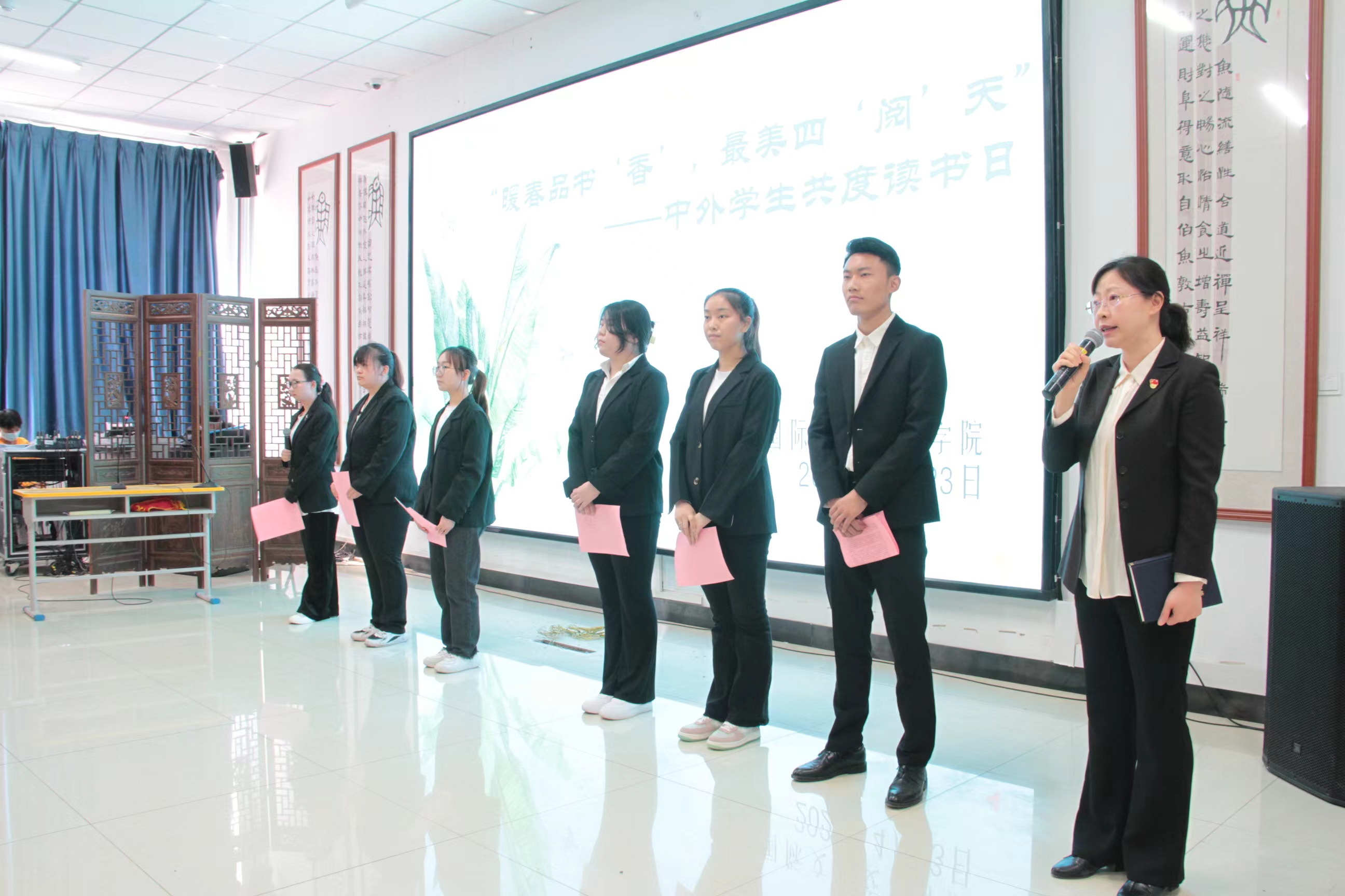 在预科楼118 会议厅开展了“暖春品书‘香’·最美四‘阅’天”世界读书日主题活动。学院党委书记李嘉东、院长伊莉曼•艾孜买提、副院长刘伟乾、各班主任老师以及学院全体学生参加了此次活动,活动由张丽老师和研究生刘景超同学共同主持。