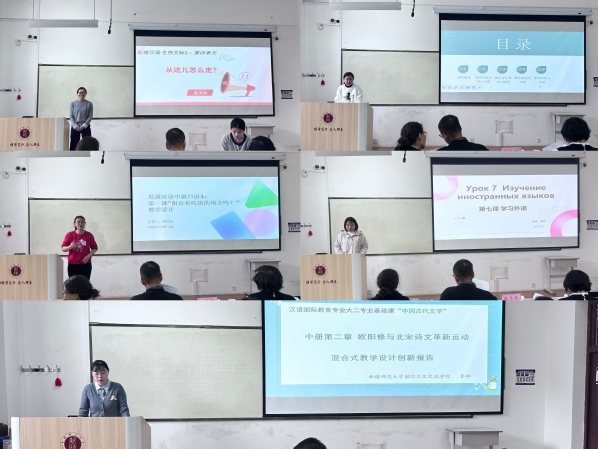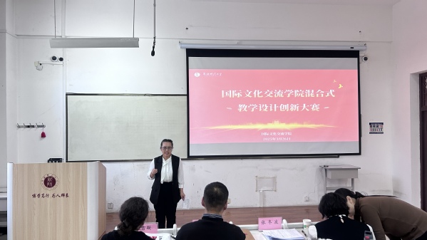 混合式教学设计创新大赛在温泉校区齐学楼223教室成功举办,来自学院的10名优秀教师同台竞技,展现精湛教学水平。大赛邀请毋兆鹏教授、张东波教授和唐雪凝教授担任评委,学院全体专任教师及硕博研究生现场观看。