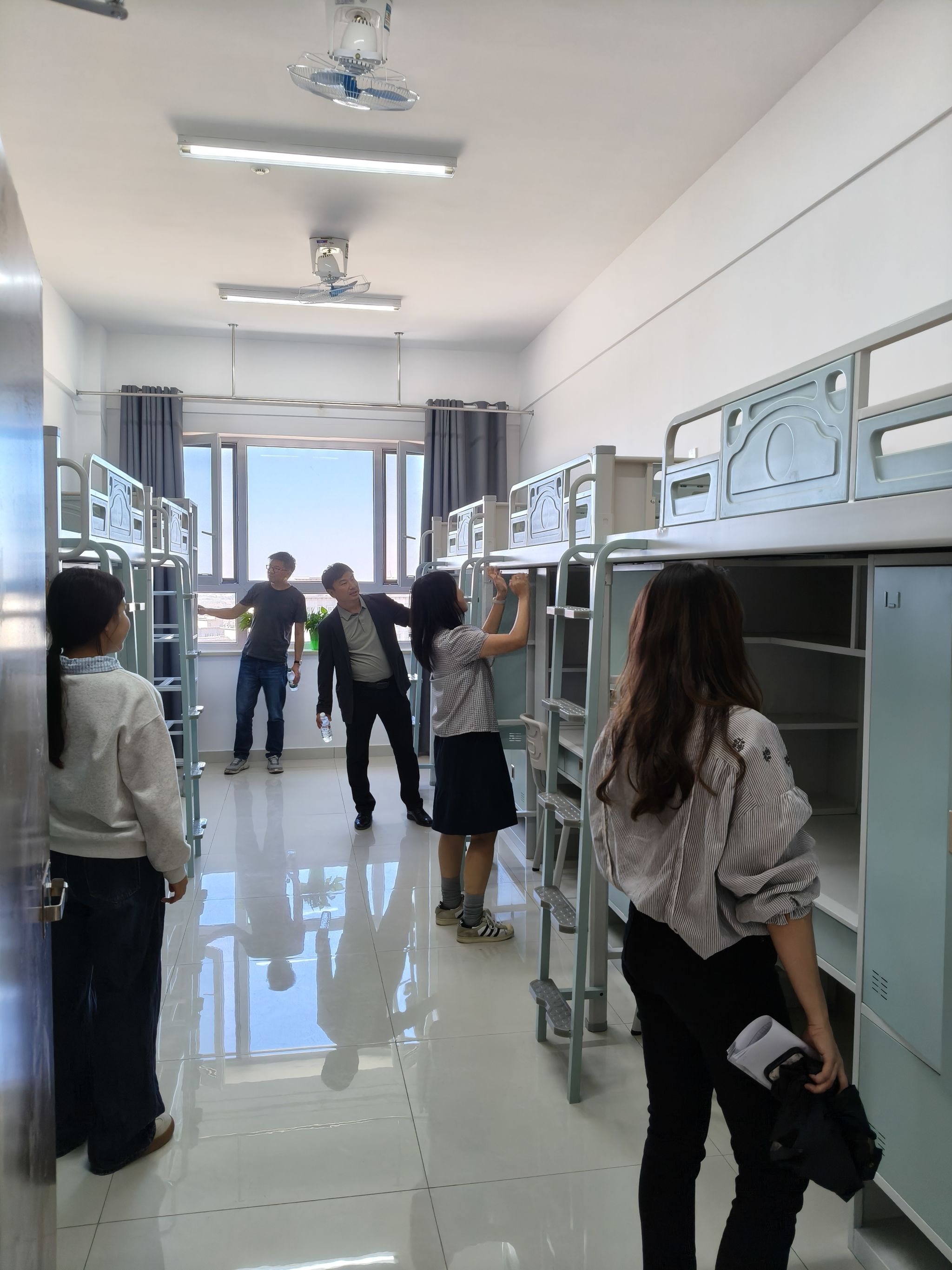 本次检查工作旨在“查隐患、保安全、送温馨”。检查队伍逐层走访新生宿舍,不仅细致查看了宿舍基础设施的完好情况,如水电线路、风扇、桌椅门窗等是否正常,更对卫生死角、消防安全通道等关键环节进行了重点排查。老师们不时停下脚步,现场模拟新生入住流程,亲身测试家具使用的便捷性与安全性,确保新生入学后能够住得安心。