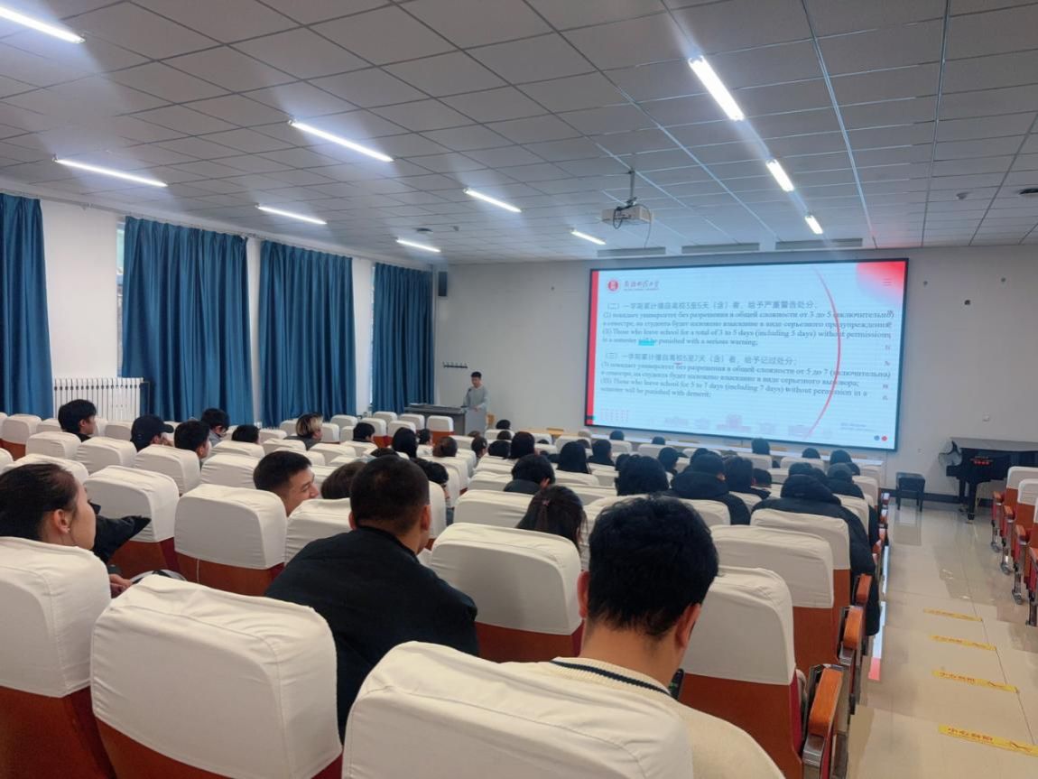 于11月21日牵头组织召开了全校留学生学风教育暨安全教育大会。全体在校留学生集中参加了本次主题教育活动。