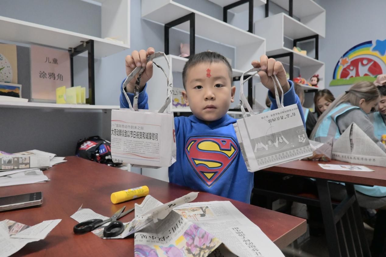 现场秒变创意工坊——旧报纸“重生”为潮流手提袋、原创手作帽,留学生们也带来各国环保小巧思,和孩子们一起把“废品”玩出花样。问答环节秒变抢答大比拼,垃圾分类、地球保护知识轻松掌握,互动氛围直接拉满!
