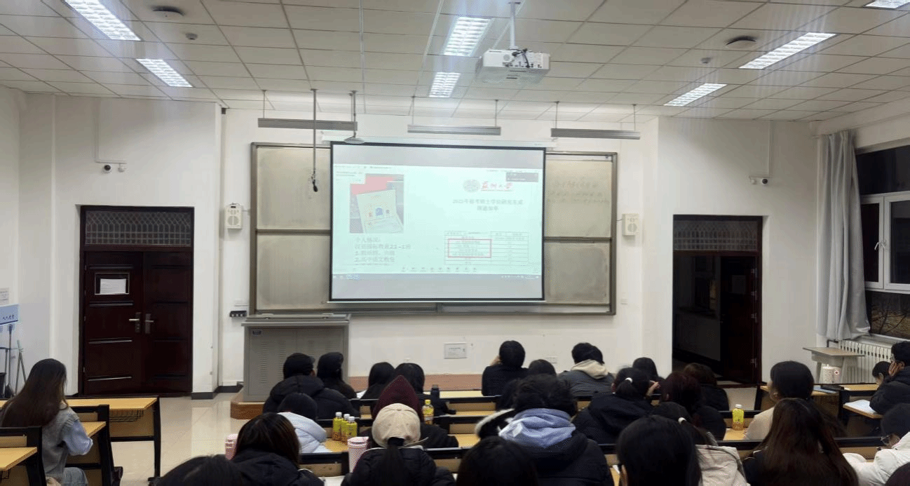 分享会上,陈慧敏围绕第二课堂与志愿服务,介绍了活动类型与学分获取途径,并结合支教、志愿讲解等经历,鼓励同学们在服务中拓宽视野。宋金歌聚焦专业学习与实践融合,强调制定学习计划、利用多元平台的重要性,建议同学们通过实践提升综合能力。程皖豫通过线上方式,以苏州大学考研为例解析备考策略,并就平衡学业、竞赛与考研给出实用建议。