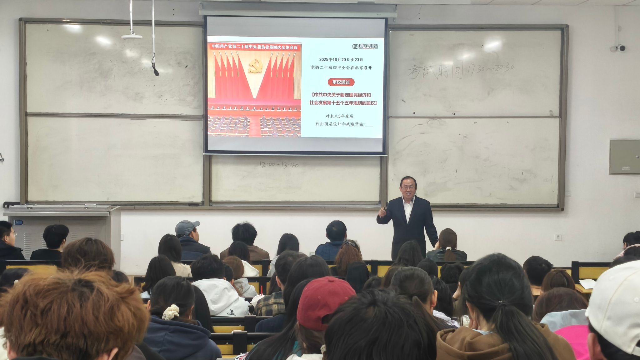 授课中,刘俊副书记紧密结合党的二十届四中全会精神以及《中共中央关于制定国民经济和社会发展第十五个五年规划的建议》,系统阐述了中国式现代化的时代背景、战略部署与实践路径。他从“夯实基础”与“全面发力”两个维度出发,深入解读国家在关键发展阶段的目标任务和政策导向,勉励同学们立足专业、把握大势,将个人成长融入国家发展大局,不断增强服务中国式现代化的责任感和使命感。