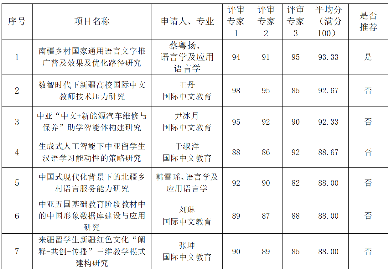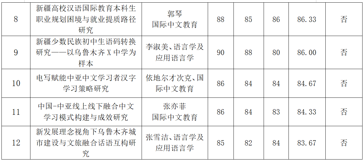 按照自治区教育厅《关于组织开展2026年自治区研究生教育创新计划项目申报工作的通知》精神及学校《关于组织开展2026年自治区研究生创新项目校内遴选推荐工作的通知》要求,乐球直播 2026年自治区研究生创新项目申报指标为1项,共收到申报材料12项。经研究生个人申请、学院邀请三位校外专家进行匿名评审,现将评审结果公示如下: