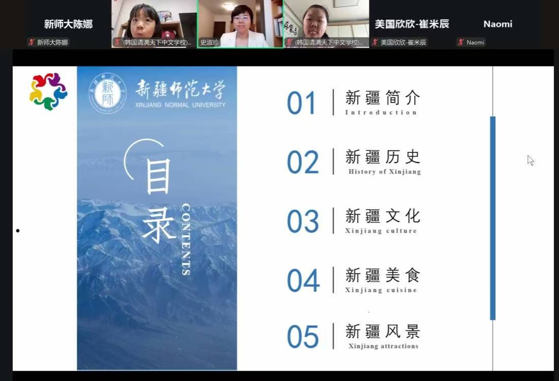 米海尔古丽·阿吉在致辞中表示,希望通过此次网上营活动,能让华裔青少年更深入地感受博大精深的中华文化,增强对祖(籍)国的了解与认同,成为中华文化传播的小使者。刘俊介绍了新疆师范大学在国际文化交流方面的成果,并表示学校将全力支持本次活动,为营员们提供优质的学习体验。来自美国欣欣教育基金会新西兰奥克兰旭日中文学校韩国情满天下中文学校南非开普敦华星华教中心老师鼓励同学们积极参与活动,探索中华文化的奥秘。参营营员们分享了自己学习中文和中华文化的有趣经历表达了对中华文化的热爱以及对参与此次网上营活动的期待与激动心情。