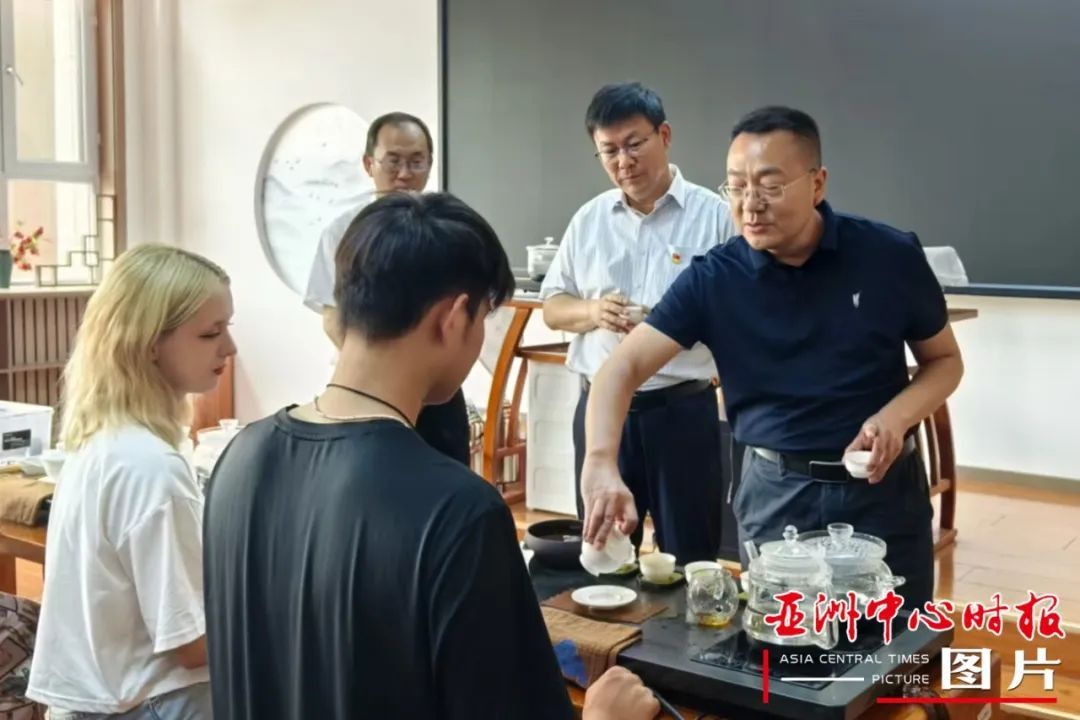 “我来沏一盏茶给叔叔阿姨们喝吧!”路过茶艺教室,吉尔吉斯斯坦留学生杜杰克展示了自己初学的茶艺,盛情邀请委员们品茗闻香。“茶,承载着深厚的文化底蕴,是中华文明的重要象征。单说这件公道杯,就不仅是一件器具,它体现着公平无私心的人文精神。”自治区政协委员、新疆茶叶商会会长王常华品茗后,顺势拿起桌上的公道杯讲起背后的文化内涵。看到学生们听得津津有味,他主动提出,以后可以为学校的茶艺课程提供帮助,让这份蕴含东方智慧的“和合”之道,滋养更多年轻的心灵。
