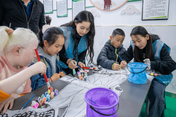 活动伊始,志愿者根据PPT内容向孩子们介绍清明节的历史背景、传统习俗,让孩子们对清明节有更深入的了解。接着志愿者用画笔、颜料、纸鸢模板等材料,现场指导孩子们绘画纸鸢,充分发挥孩子们的想象力,在纸鸢上绘制了与清明节相关的图案以及写上了自己最想表达的话语。最后,志愿者引导孩子们讲述自己的创作理念,然后组织孩子们放飞寄寓祝福与思念的纸鸢,让孩子们在活动中感受清明节的传统习俗。