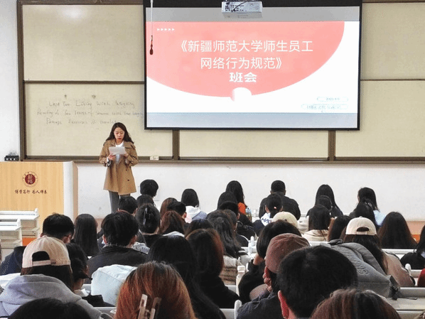 组织全体学生开展了网络行为规范主题班会。本次主题班会由辅导员何娜老师和余金桀老师主持。