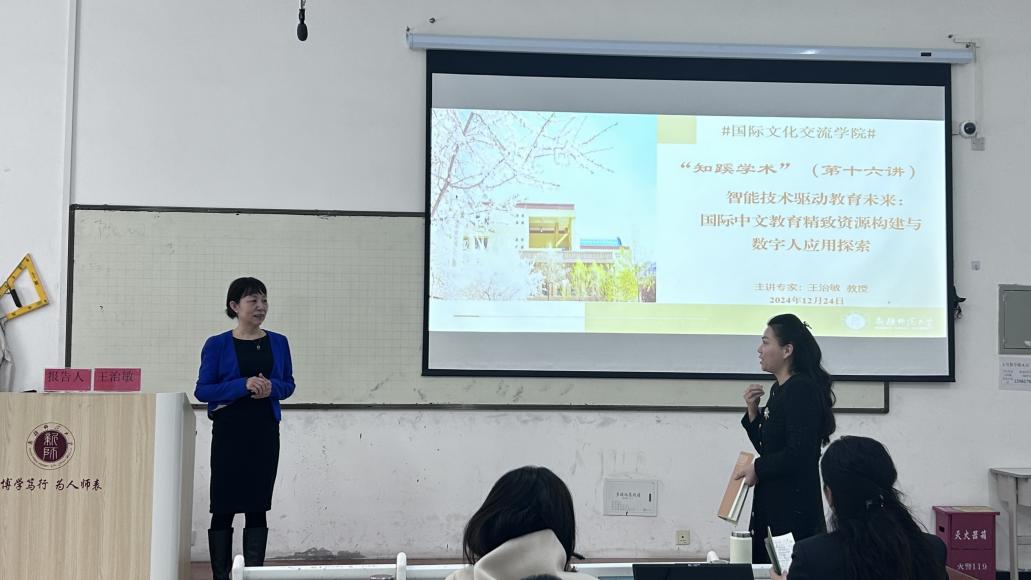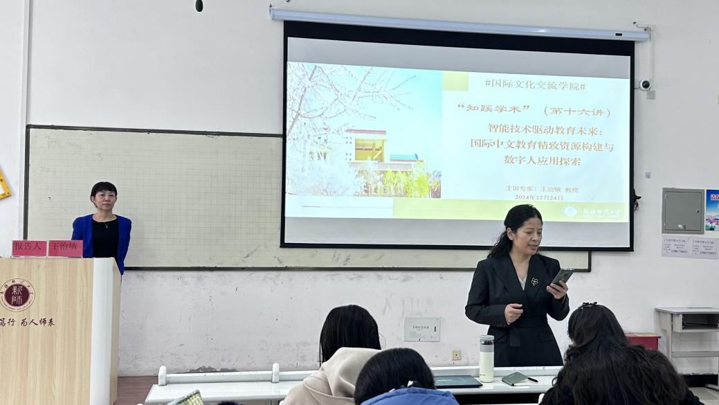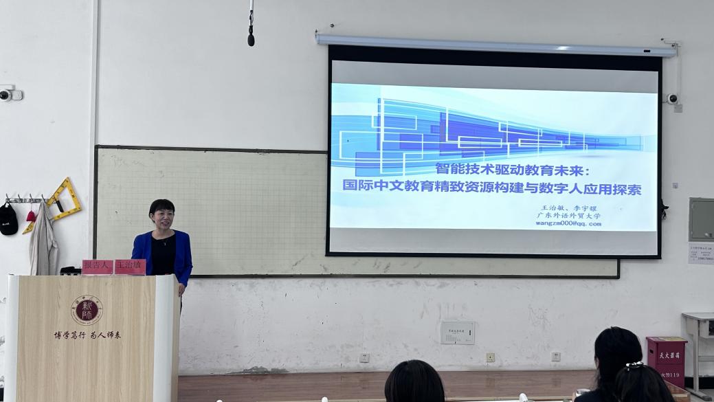 12月24日下午,“知蹊学术”第十六讲在温泉校区2号教学楼126教室举行,广东外语外贸大学王治敏教授受邀做了题为《智能技术驱动教育未来:国际中文教育精致资源构建与数字人应用探索》的讲座。