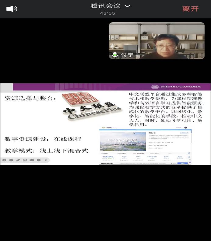 112520:00,乐球直播 “知蹊学术”第十五讲在线上顺利开展山东第一医科大学付宁教授做了题为《数智时代来华留学生国情教育课程群的构建与实践》的专题讲座。