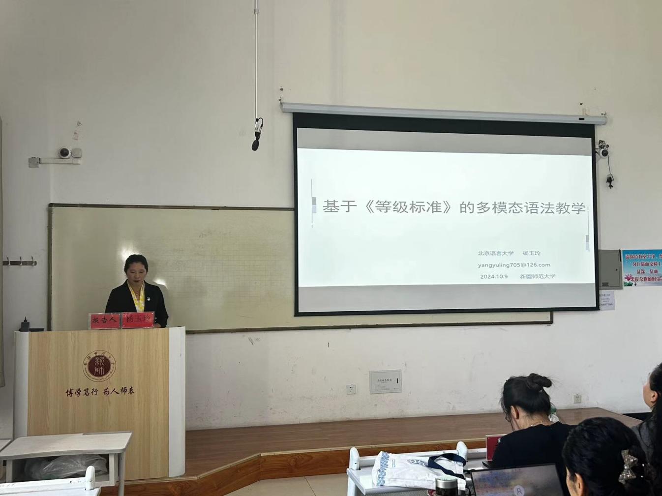 2024年10月9日,在温泉校区3号教学楼A区127教室,中国语言文学学院和中亚汉语国际教育研究中心联合举办了“知蹊学术”(第十一讲)专题讲座,专门邀请北京语言大学杨玉玲教授做了题为《基于〈等级标准〉的多模态语法教学》的讲座。学院师生听取了讲座。