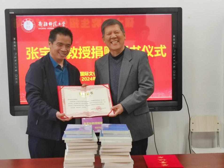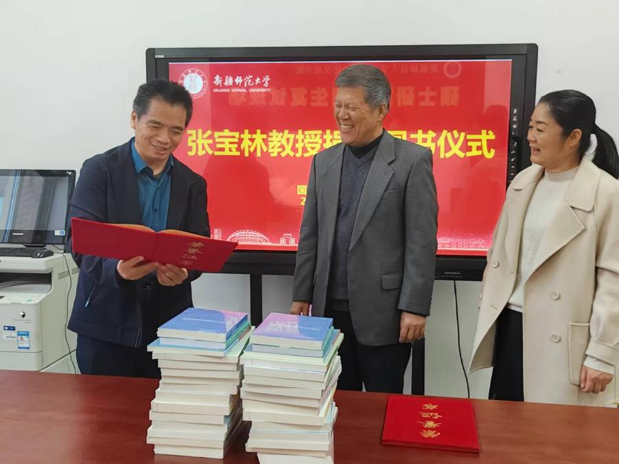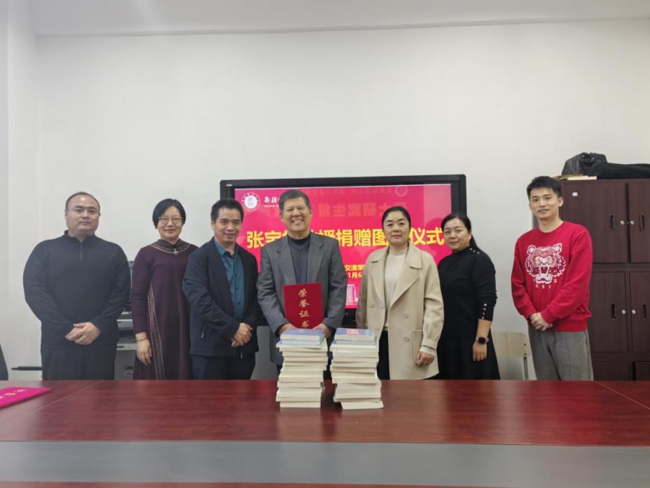 银龄学者张宝林教授向学校及学院捐赠图书,赠书仪式在温泉校区文科5号楼303会议室顺利举行。