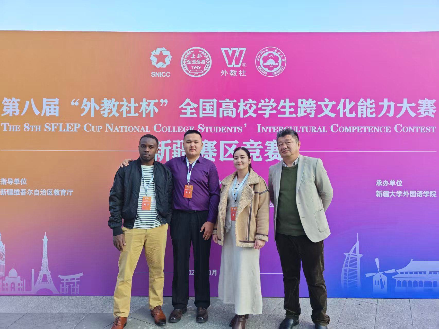 近日,第八届“外教社杯”全国高校学生跨文化能力大赛新疆赛区决赛顺利落幕。由我校乐球直播 留学生MOUSSA MAHOMA EL-ARIF、AZAT YERASSYL、ANNAGELDYYEVA GULBAHAR组成的代表队在学院王云娜、刘运红、赛力克·塔力甫老师的指导下,凭借出色的跨文化素养与稳定的现场发挥,最终荣获自治区一等奖。